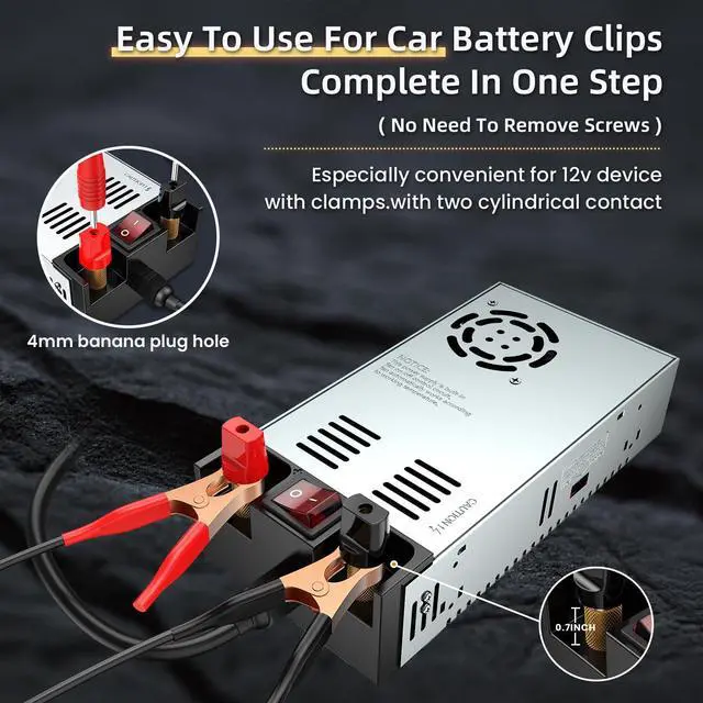 Patented Connector Design: Equipped with an ON/OFF power switch and reinforced red/black terminals compatible with 4mm banana plugs. Easily connects with battery clamps for quick "+" and "-" wire connections. The innovative design is US patented for more convenient and secure wiring.