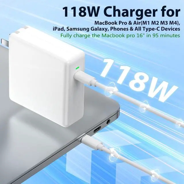 118W Mac Book Charger Compatible with MacBook pro/Air, M1 M2 M3 M4 M5, iPad Pro,Samsung Galaxy,Phones&All Type-C Devices and More, Include USB C Charging Cable