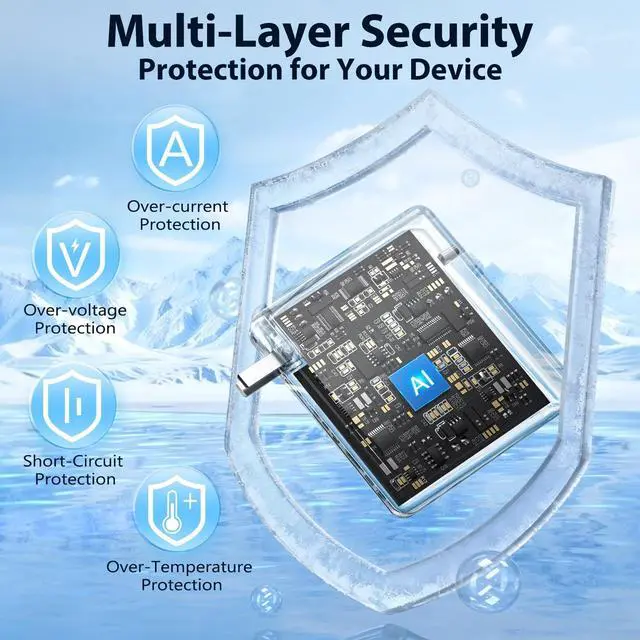 Smart Protection Built-in safeguards prevent overcharging, overheating, and short-circuiting. Advanced temperature monitoring ensures stable output, extending the life of both charger and device.