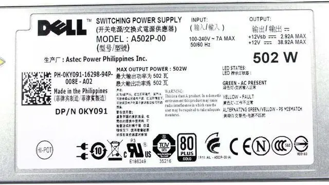 Edge R610 502Watt Switching Power Supply A502P-00 J38MN KY091 8V22F