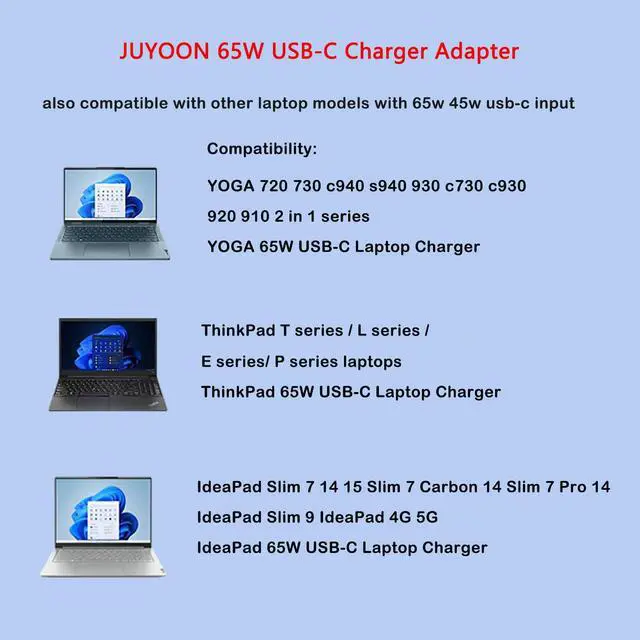 JUYOON 65 Watt USB C Charger Compatible with Lenovo ADLX65YCC2D ADLX65YLC2D ADLX65YDC2D adlx65ylc3a adl65ydc3a adlx65yac3a adlx65ycc3a.