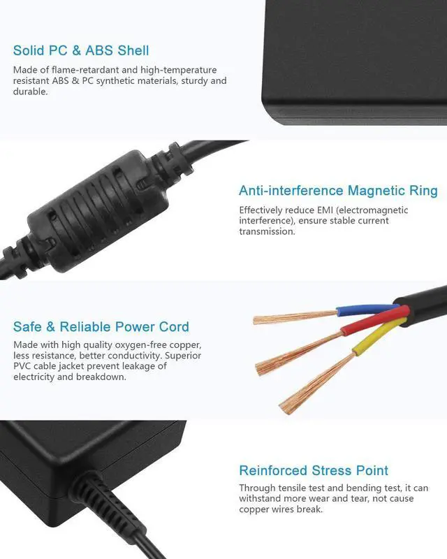 Built-in advanced synchronous rectifier smart chip and EMI filter, convert fluctuating voltage to stable voltage, effectively reduce electromagnetic interference, ensure stable voltage output.