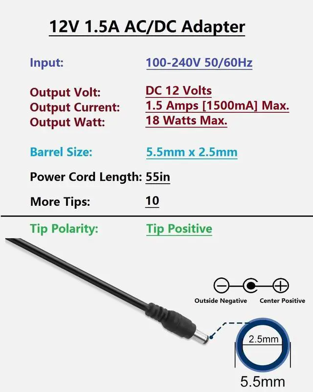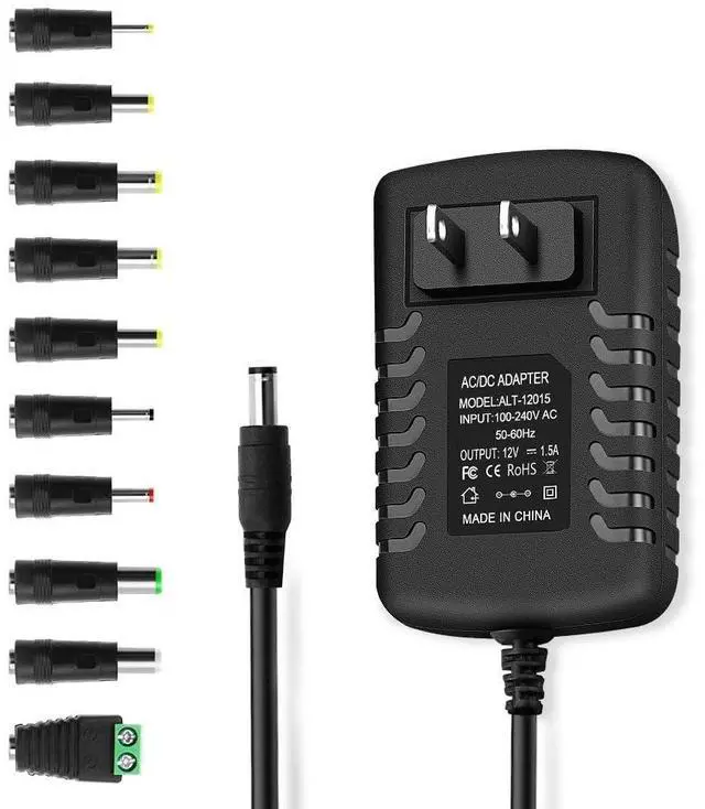 AC/DC Adapter 12V 1.5A (18W) x 1 DC connector tips x 10pcs
