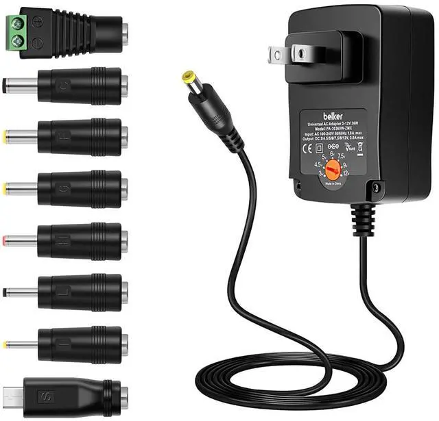 Belker 36W Universal AC Adapter with 12vdc 9vdc 7.5vdc 6vdc 5vdc 4.5vdc 3vdc 1.0a 2.0a 3.0a output