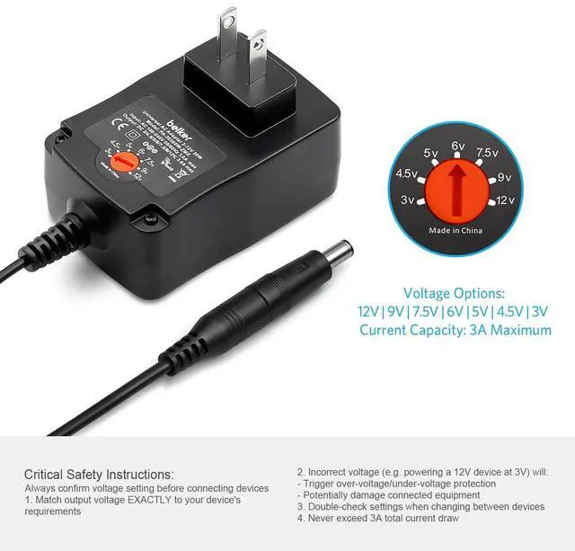 You can easily adjust the voltage with the key, very safe and reliable. DC 12v 9v 7.5v 6v 5v 4.5v 3v output, support 0 - 3000ma self-adaption output current at each volt. A nice replacement power supply for many AC adapters.