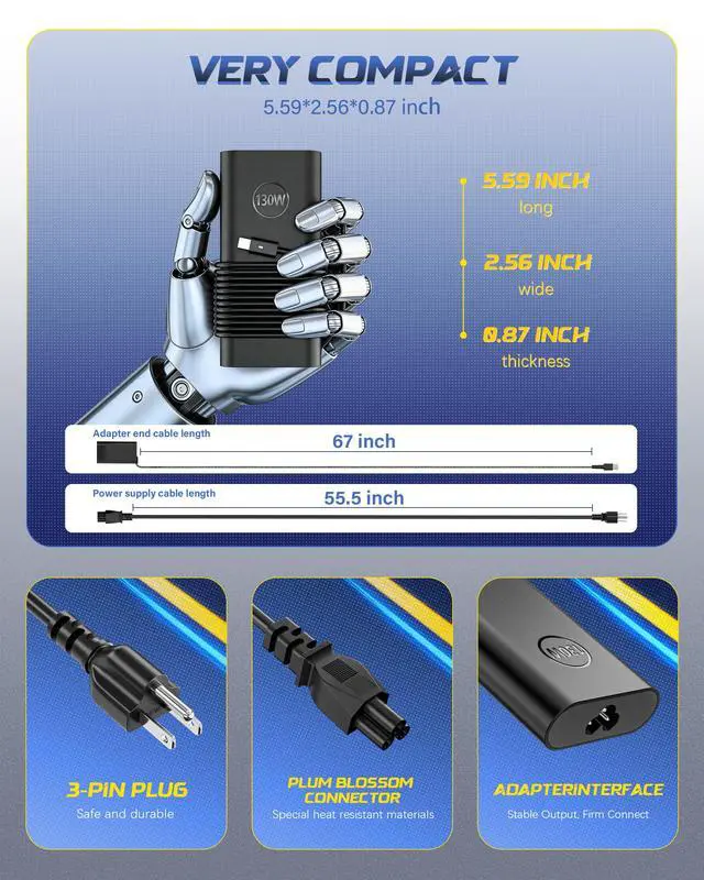 Compatible with Dell 130W USB C Laptop Charger