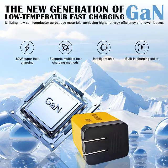80W GaN Fast Charger with Retractable USB-C Cable 3-in-1 Wall Charger Block with Built-in Type-C Cord & 2 USB Ports, PD 3.0 & QC 4.0 Fast Charging for iPhone 15/16/17, Samsung Galaxy, Pixel, iPad Y