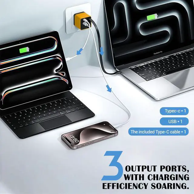 80W Fast Charging for Multi Device ChargingPowerful 80W output supports multi device charging at the same time, delivering fast charging for phone and laptop without slowing down. Charge your smartphone, tablet, and USB-C laptop efficiently from one compact charger.