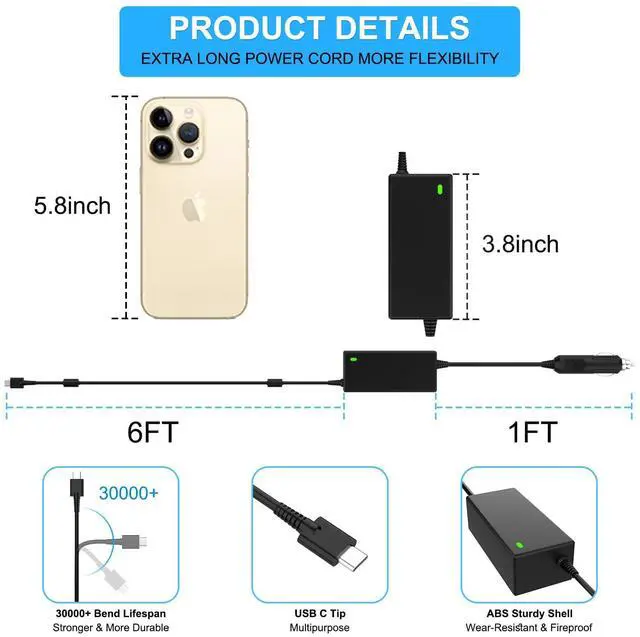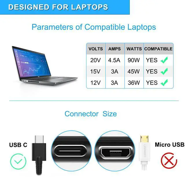 - Maximum Output: 5V 3A, 9V 3A, 12V 3A, 15V 3A, 20V 4.5A (compatible with 30W, 45W, 60W, 65W, 85W, 90W devices)