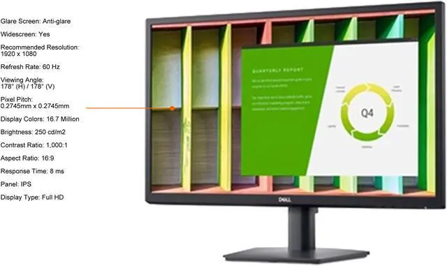 Dell 24" (23.8" Viewable) 60Hz IPS FHD Monitor (Grade A Refurbished) 8 ms D-Sub, DisplayPort E2422H