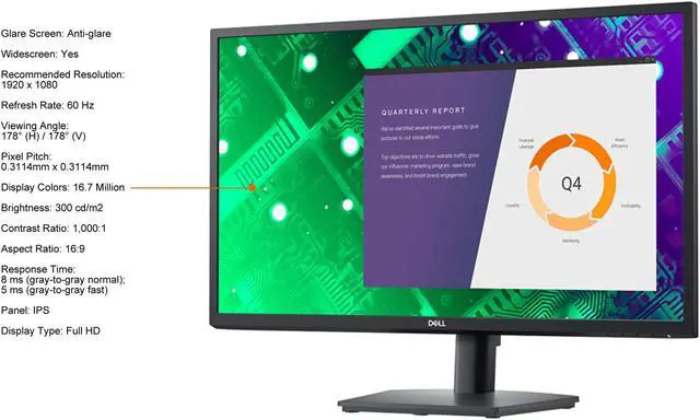 Dell 27" 60Hz IPS FHD IPS Monitor 8 ms (gray-to-gray normal); 5 ms (gray-to-gray fast) D-Sub, HDMI, DisplayPort E2722HS