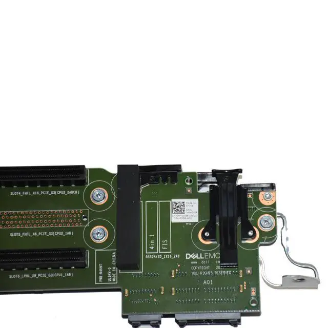 This is a genuine Dell EMC PowerEdge R7425 Riser 2E card (part # HHGW8), designed specifically for the 4/6 hot-swap hard drive chassis configuration of the R7425 server. This essential upgrade component enables the installation of dual-width, high-performance PCIe cards, such as GPUs for accelerated computing, AI, machine learning, or vGPU workloads. The riser provides two PCIe slots (one x16 and one x8 electrical) in a compact form factor, maximizing the expansion capabilities of your PowerEdge R7425. It ensures proper power delivery, secure mounting, and optimal thermal alignment within the server chassis. Ideal for IT administrators and data center professionals looking to expand the functionality of their Dell PowerEdge server infrastructure.