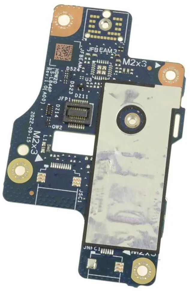 Genuine Dell OEM original power button board for the Dell Latitude 7230 Rugged Extreme Tablet. This board is mounted to the inside of the bottom cover assembly.