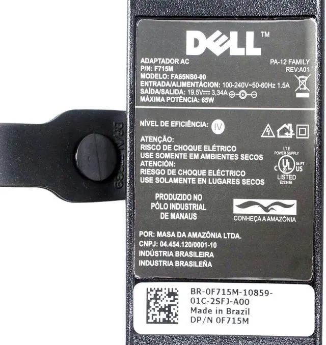 Dell FA65NS0-00 Black 19.5V 65W AC Power Adapter F715M 0F715M CN-0F715M