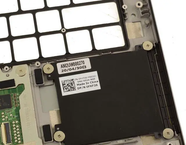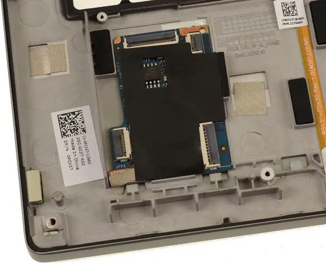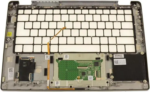 Dell Latitude 7310 Laptop Palmrest Touchpad Assembly with touchpad module. This palmrest features the Aluminum finish (silver).