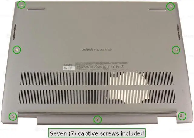 Genuine Dell original Base Bottom Assembly for the Dell Latitude 5430 Chromebook. This includes the seven (7) captive screws and the rubber feet.
