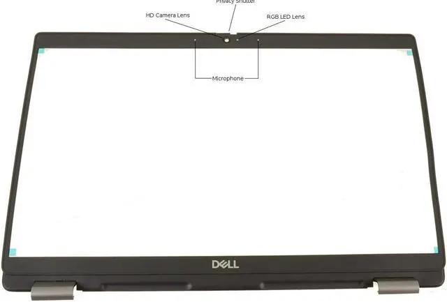 Genuine Dell OEM 13.3" Front Trim LCD Bezel, compatible with the Latitude 5320 Laptop with the optional RGB web camera and non-touchscreen LCD. This bezel includes the sliding privacy camera window.