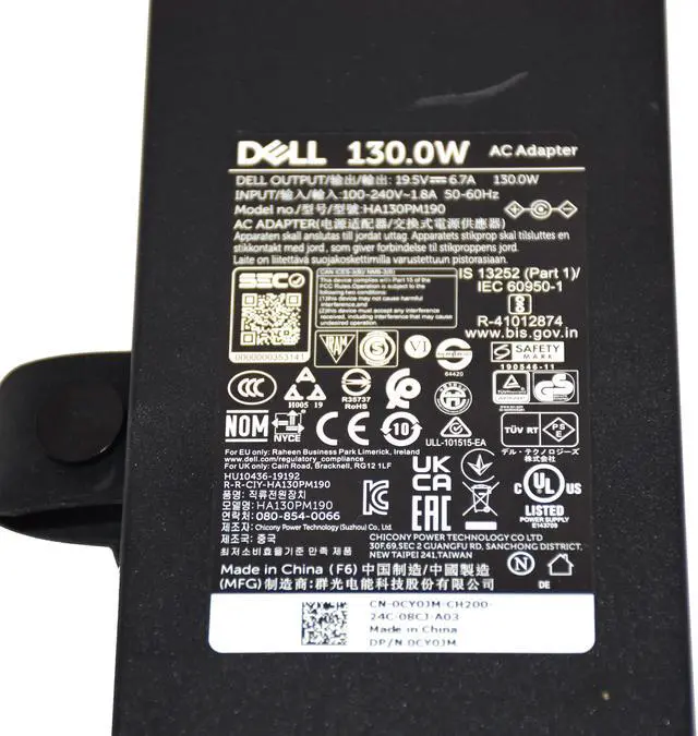 The Dell HA130PM190 130W AC Power Adapter is an authentic OEM replacement charger engineered for high-performance Dell laptops. Delivering stable 19.5V /130W power, it ensures rapid charging and seamless operation for demanding devices like the XPS 15 and Precision workstations. Built to strict safety standards, it features advanced protection against over-voltage, short circuits, and overheating. Compatible with popular Inspiron, Vostro, G-Series, and Latitude models, this adapter includes a detachable 3-prong AC cord (US plug) and comes in Dell-retail packaging. Restore peak productivity with genuine reliability!