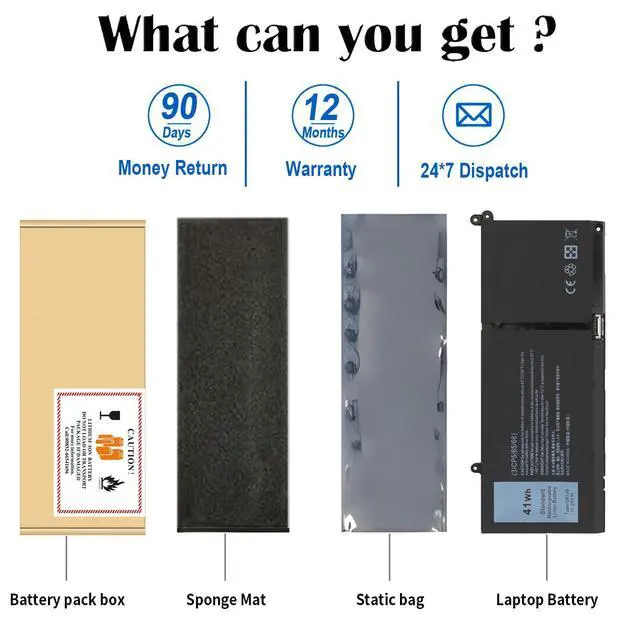 G91J0 / V6W33 / TN70C / 927N5 / 0927N5 / 0VKYJX / 0WV3K8 / 0MVK11 / 0XDY9K / 0MGCM5 / PG8YJ / 0PG8YJ / FH3K2 / 0FH3K2 / MGCM5 / JGCCT / N9XX (Important Note:There are 2 battery models may fit for the laptop: G91J0 41Wh and V6W33 54Wh).