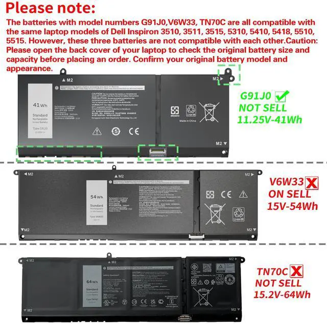 | Compatible Models | Replacement For Dell Inspiron 15 3510 3511 3515 3520 3525 3530 3535 Series |
