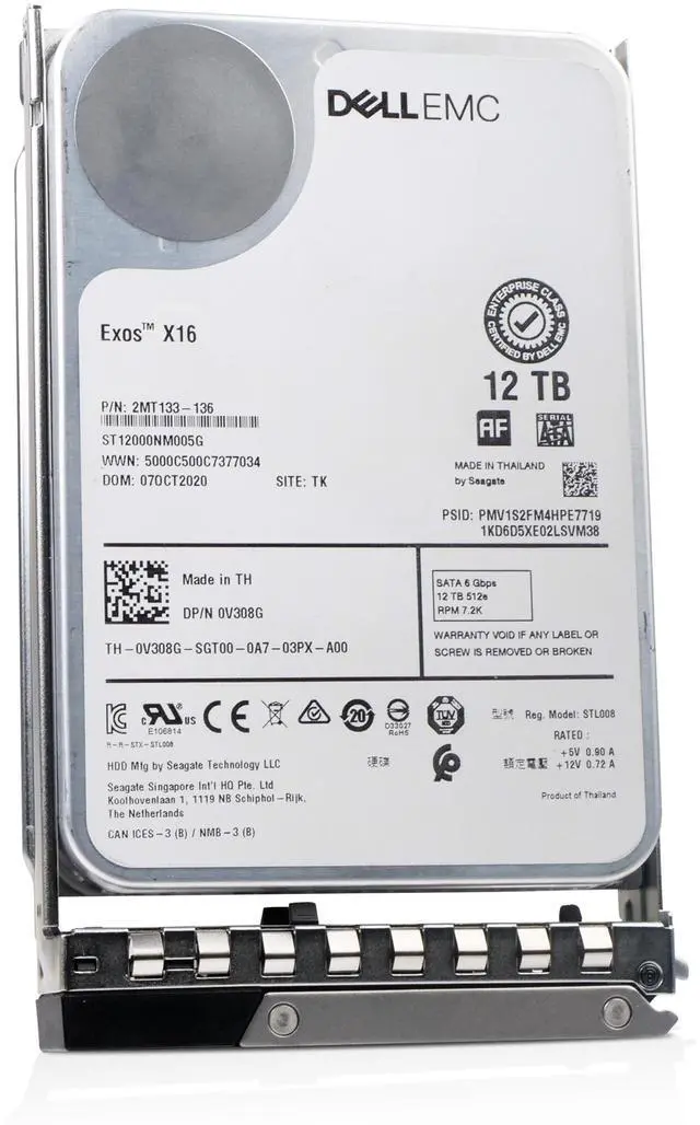 Dell G16 12TB 0V308G 7.2K RPM SATA 6Gb/s 512e 3.5" PowerEdge Refurbished Hard Drive