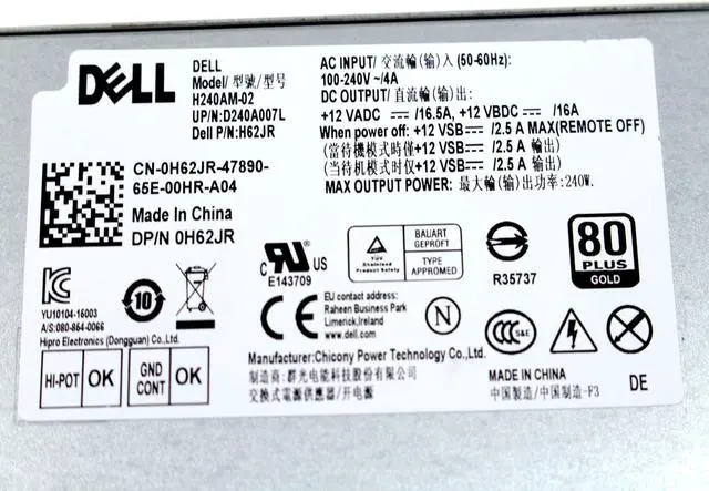 Genuine Dell Optiplex 3040 5040 7040 240W Computer Power Supply Unit 4GTN5 DHVJN 3RK5T H62JR