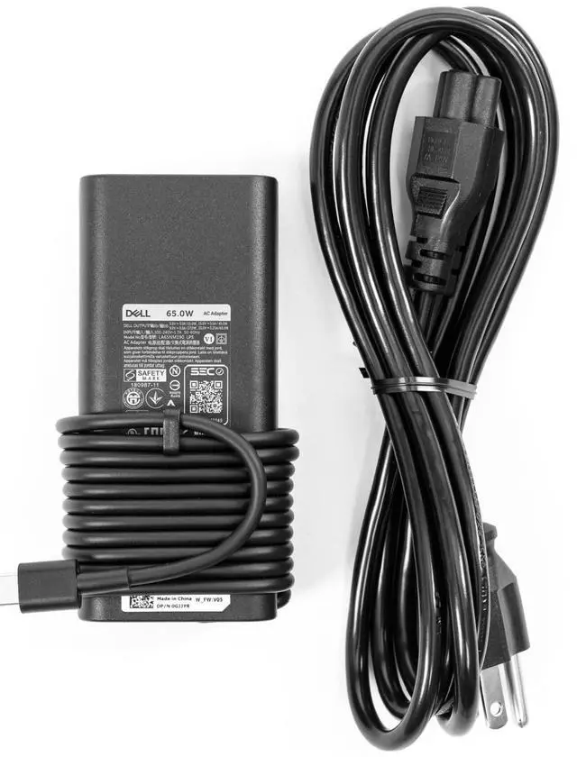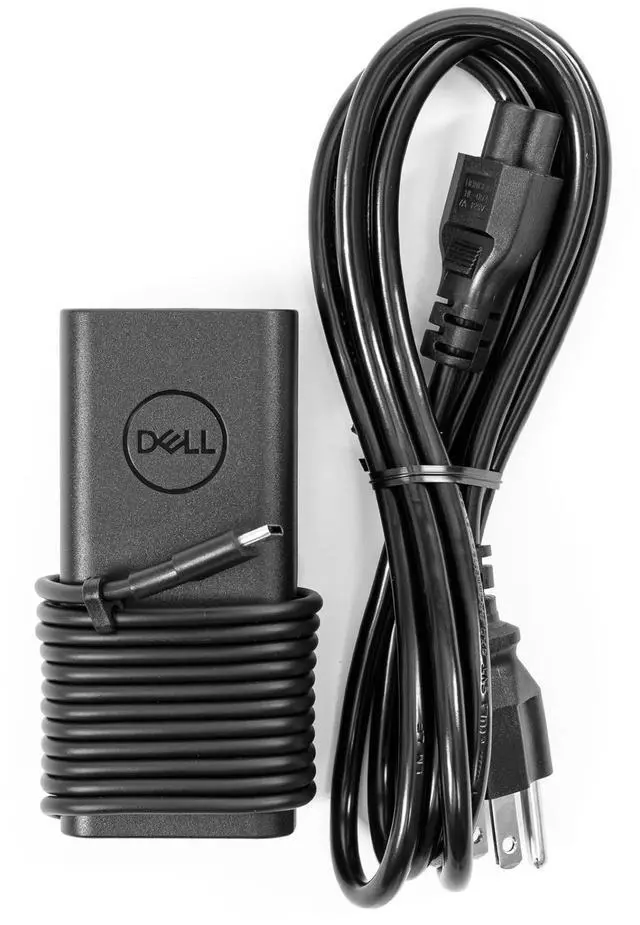 Genuine Dell OEM AC Power Adapter 65-watt power supply. This power adapter uses the USB C (USB Type-C) connector.