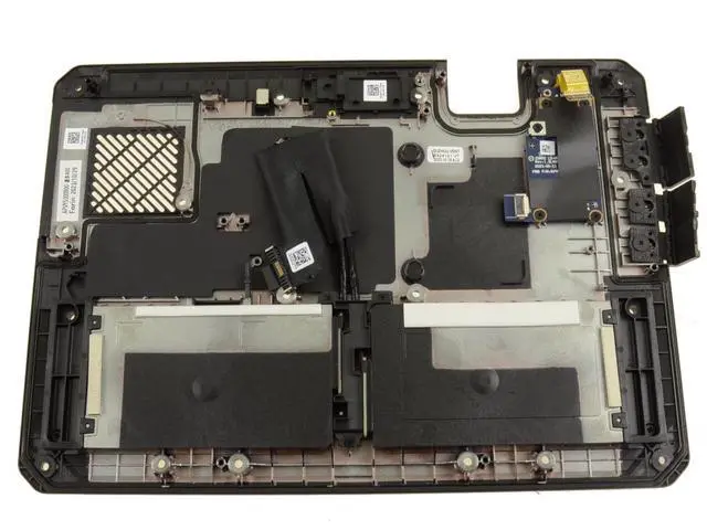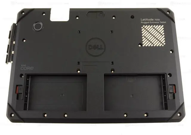 Genuine Dell OEM base bottom cover assembly for the Dell Latitude 7030 Rugged Extreme Tablet system with the optional Dual Battery Bays; with optional fingerprint reader; and WITHOUT the optional rear facing camera.