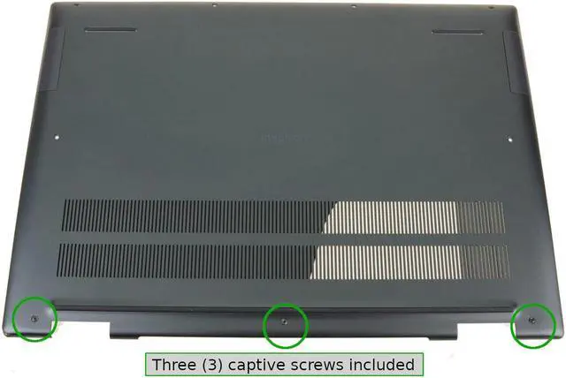 Genuine Dell original Base Bottom Assembly for the Dell Inspiron 16 7635 2-in-1. This assembly includes the rubber feet and three captive screws.