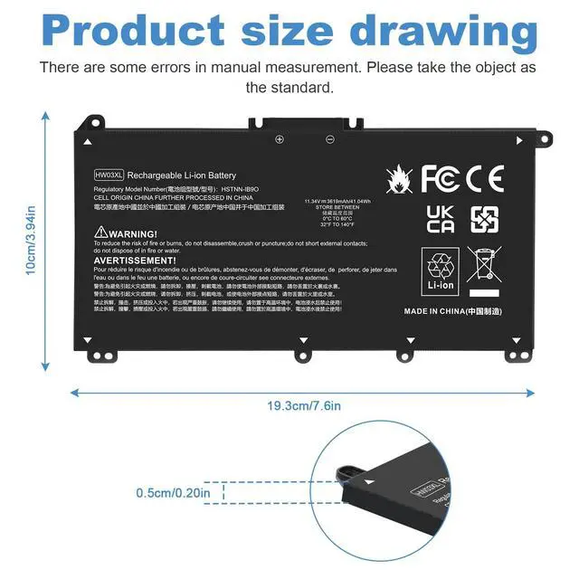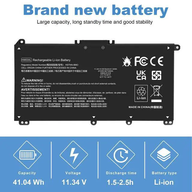 | Replacement Part Number: | HW03XL / HWO3XL / HW03041XL / HSTNN-IB90 / HSTNN-IB9O / HSTNN-LB8U / HSTNN-LB8 / HSTNN-OB2A / HSTNN-DB9Y / L96887-1D1 / L96887-421 / L96887-AC1 / L96887-2B1 / L97300-005 / TPN-C131 / TPN-Q188 / TPN-190 / TPN-191 |