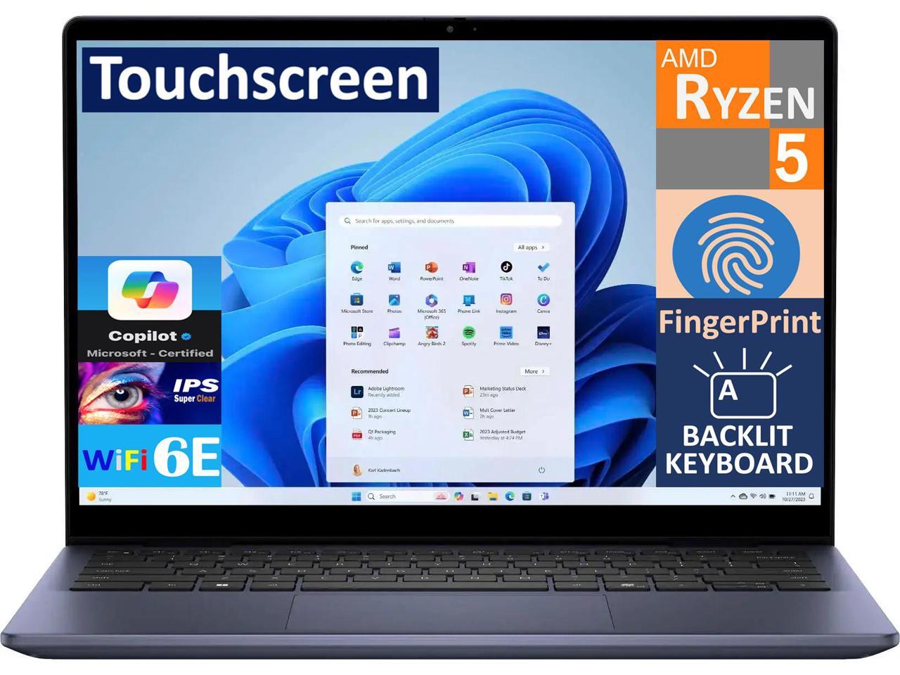 Dell Inspiron 14 Business 2-in-1 Laptop 14.0" Touchscreen IPS WUXGA Display (AMD Ryzen 5 8640HS, 64GB DDR5, 512GB M.2 PCIe SSD, Backlit KB, Fingerprint, WiFi 6E, Webcam, Bluetooth 5.3, Win 11 Home)
