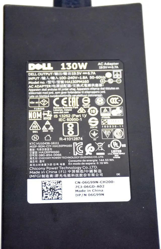Keep your Dell laptop running at peak performance with this Genuine Dell 130W AC Adapter (Part Number: P7KJ5). Specifically designed for select Dell Inspiron and other series notebooks, this power supply delivers a consistent and reliable 130 Watts of power. Whether you have replaced a lost charger or need a spare for the office, this adapter meets the exact specifications required by your device, featuring a 19.5V output and a 6.7A current . Built with Dell's quality standards, it ensures safe and efficient charging to protect your investment.