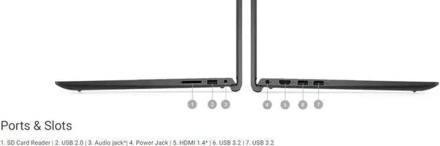 Ports: 1 x SD Card Reader, 1 x USB 2.0, 2 x USB 3.2, 1 x HDMI 1.4, 1 x Headphone & Microphone Audio Jack