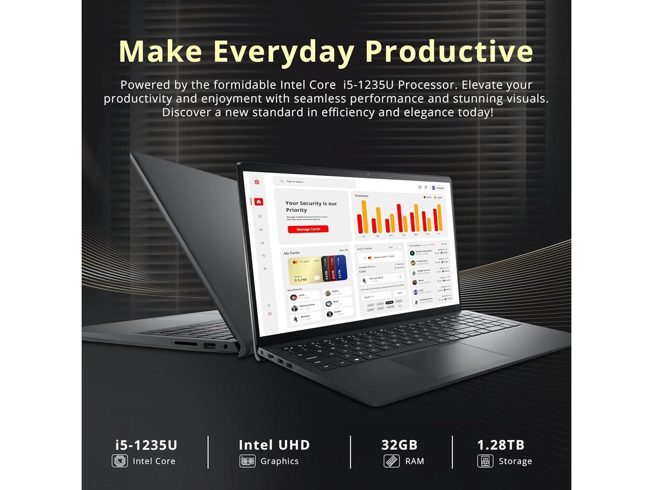 Dell Inspiron 15 15.6" FHD Touchscreen Laptop, Intel i5 1235U, 32GB RAM, 1.28TB Storage(1TB SSD+288GB Docking Station Set), Intel UHD Graphics, Num Pad, Webcam, Wi-Fi 5, Bluetooth, Win 11, Black