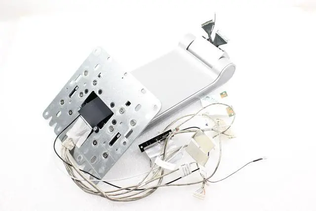 Genuine Dell Inspiron One 2350 stand assembly in silver, includes all essential cables for LCD, antenna, webcam, and internal connections. Ensures full compatibility and reliable fit for your AIO system. This OEM part restores the original ergonomic tilt support and integrates seamlessly with the chassis. Ideal for refurbishing or replacing damaged components, it delivers factory-grade performance and structural integrity.