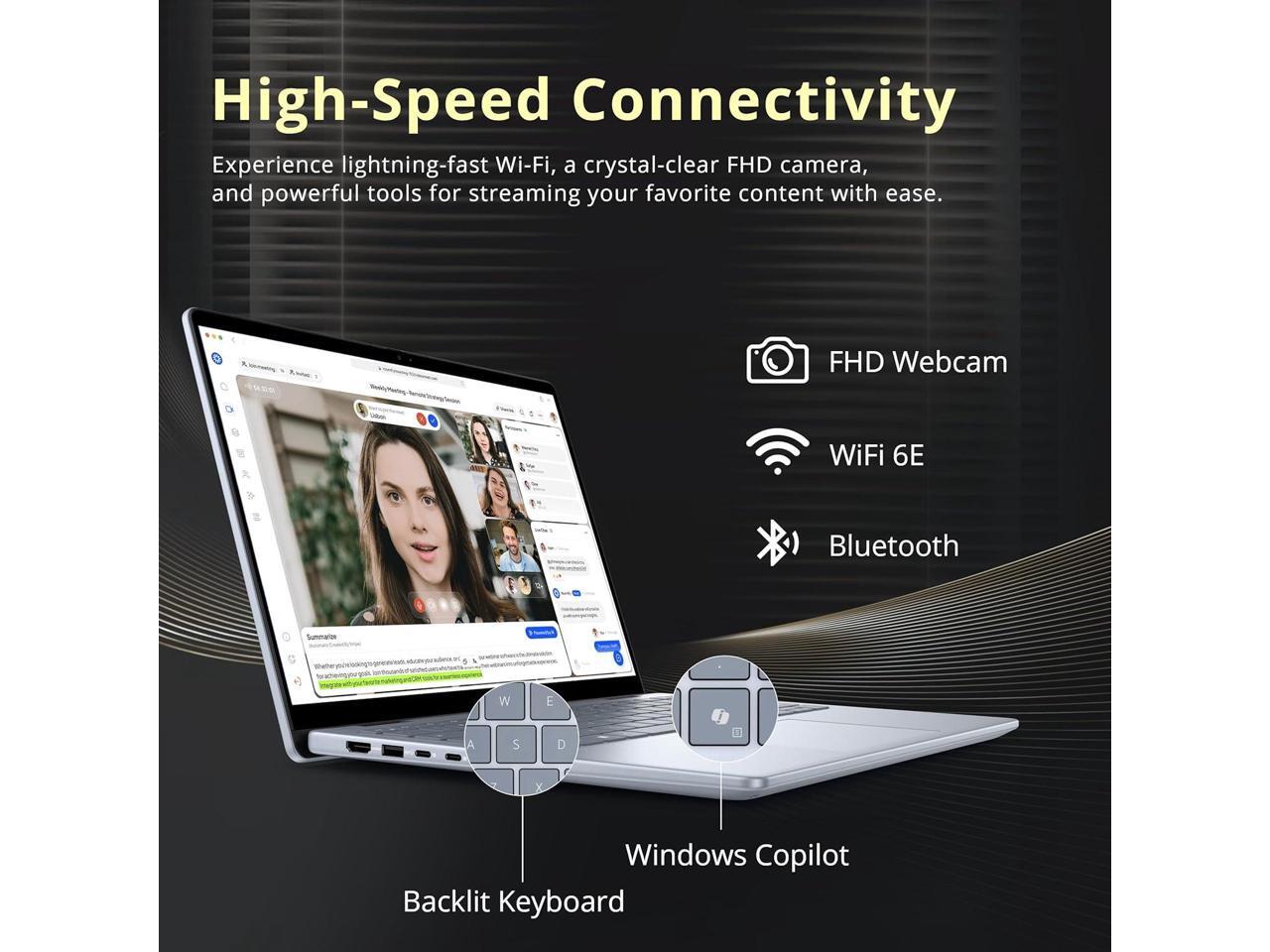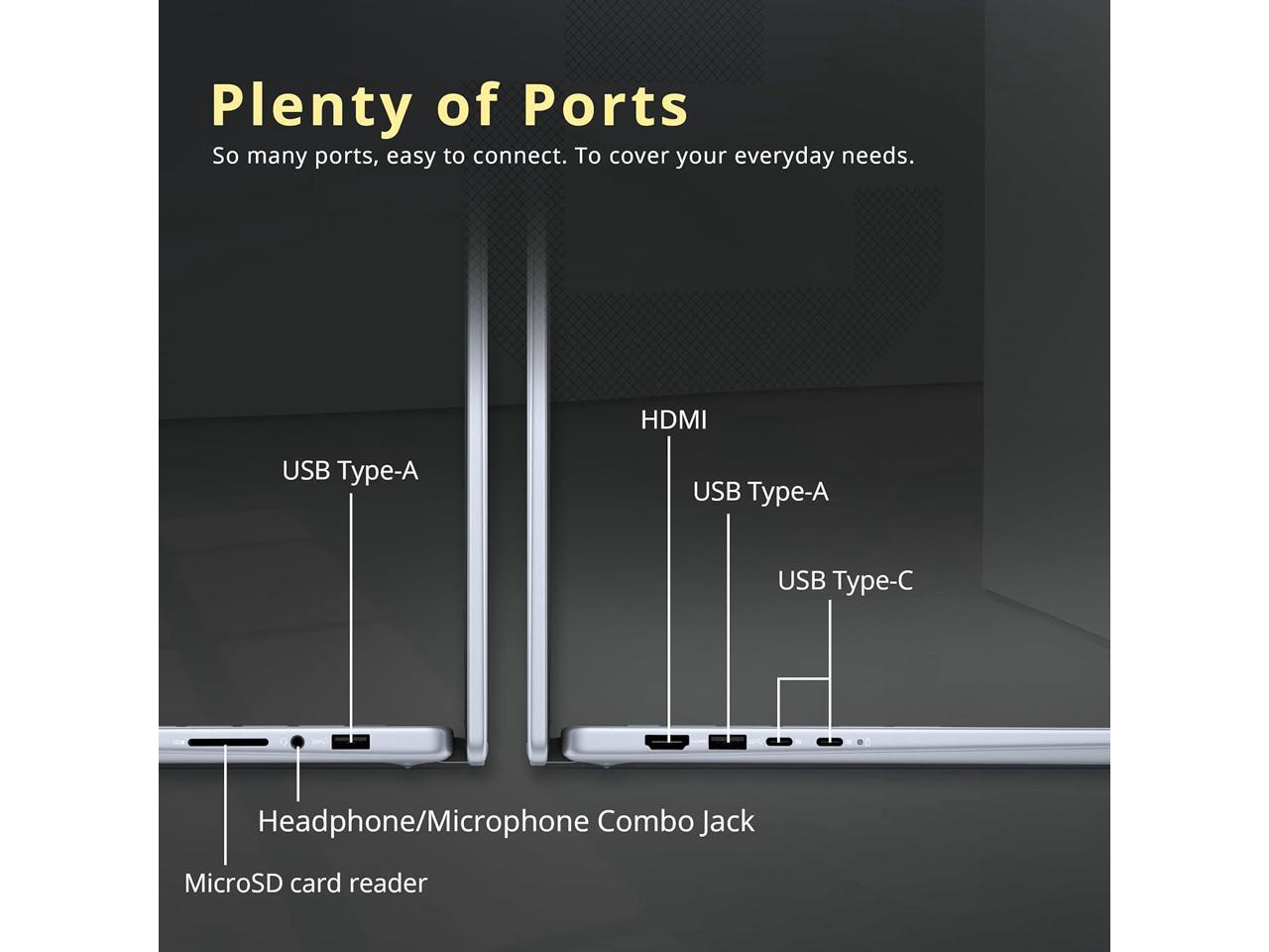 - Windows 11 Pro&Ports:2x USB-C 3.2 Gen 2, 2x USB 3.2 Gen 1, 1 x HDMI, 1 x Headphone/Microphone Combo Jack, 1 x Memory Card, 1x USB-C Power Jack; Wi-Fi 6E + Bluetooth; Ice Blue.