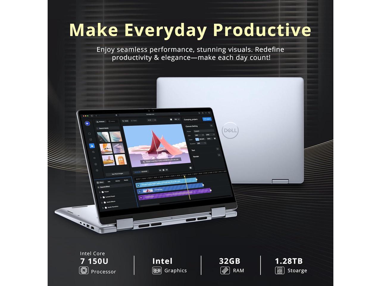 Dell Inspiron 14 2-in-1 Laptop, 14" WUXGA Touch Display, Intel 7 150U, 32GB DDR5, 1.28TB Storage(1TB SSD+288GB Docking Station Set), Backlit Keyboard, Fingerprint Reader, Wi-Fi 6E, Win 11 Pro, Blue