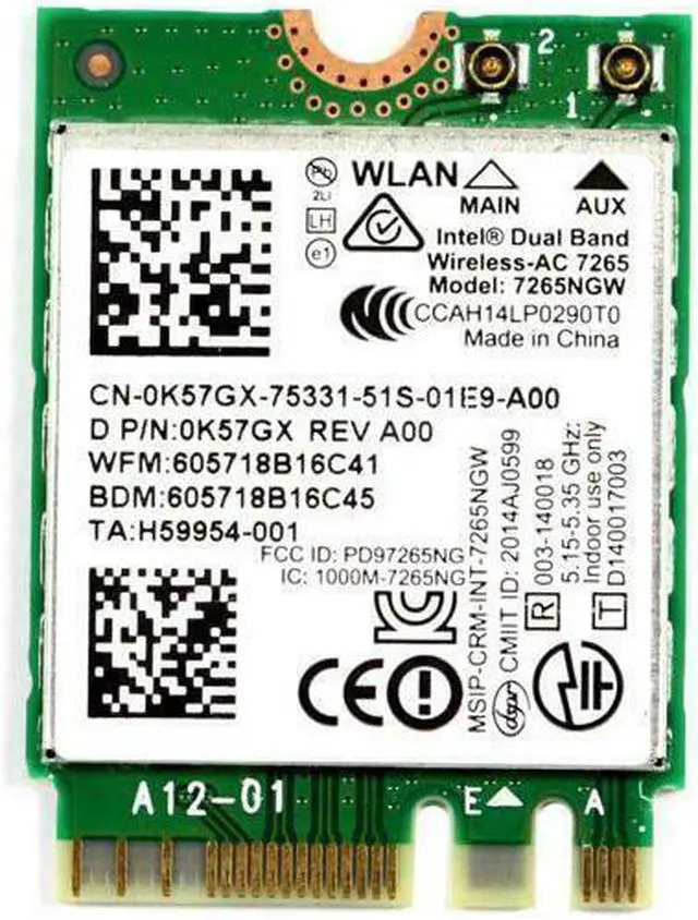 Genuine Dell E7250 E7450 Intel Dual Band WIFI Bluetooth Card 7265NGW K57GX 0K57GX cn-0K57GX