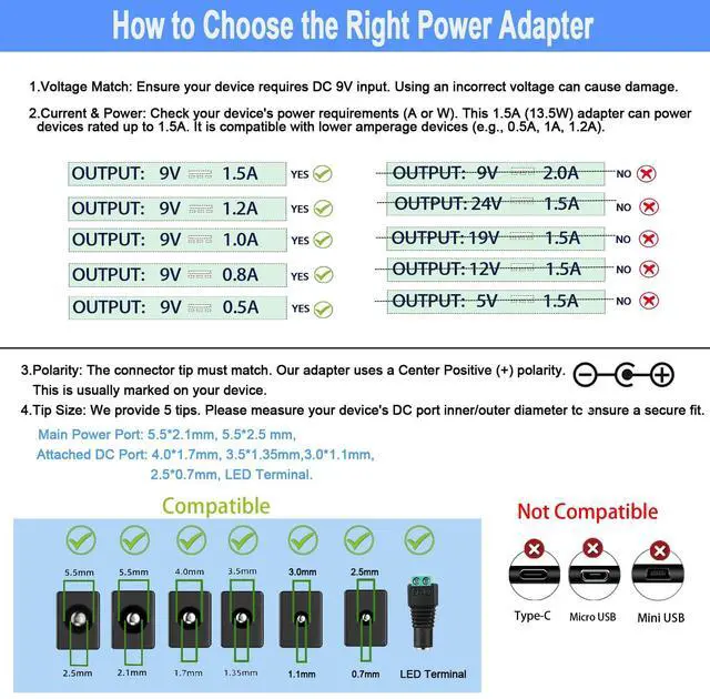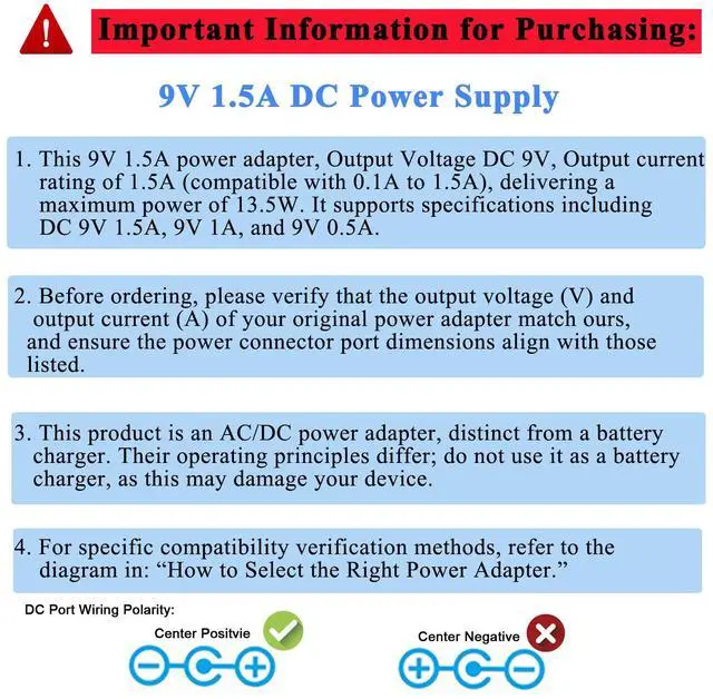 How to judge whether the TKDY's 9V 1.5A dc power supply is suitable for your equipment.