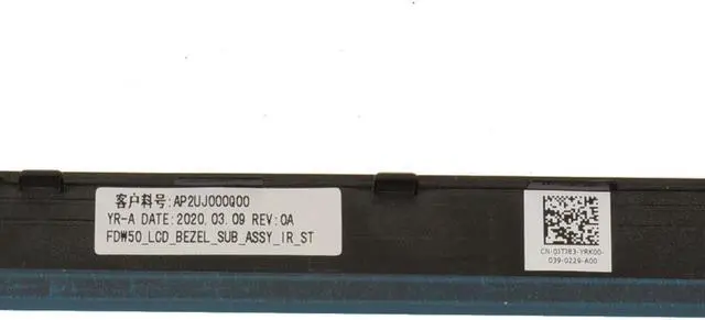 Genuine Dell OEM 15.6" Front Trim LCD Bezel, compatible with the Latitude 5510 / 5511 and Precision 3550 / 3551 Laptop with the optional IR infrared web camera. This bezel includes the sliding privacy camera window.