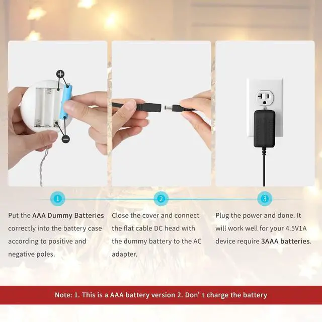 Premium Quality and Safe Charging: AAA battery power supply adapter is made of high quality materials with overcharge protection,short circuit protection and overcurrent protection. (Note:Do not attempt to charge the AAA dummy batteries with a battery charger,otherwise it will cause a short circuit.)
