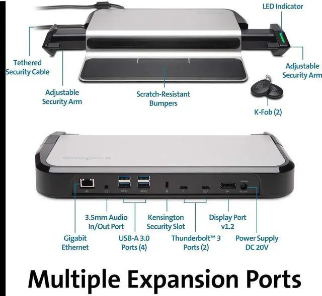 The first USB-C dock to address the docking and locking needs of workspaces has finally arrived- the LD4650P single-User USB-C Dock with K-Fob Smart Lock. Combining Kensington's thoroughly tested universal USB-C docking technology with next generation encrypted digital laptop locking technology, Kensington delivers a game-changing 2-in-1 docking and locking solution for Windows users. Get more compatibility and productivity while reducing laptop theft and improving compliance with corporate security protocols. Secures thin and light laptops 11-15" in size, including models from Dell, HP, Lenovo and other manufacturers.