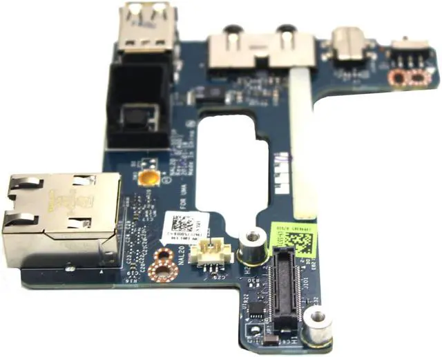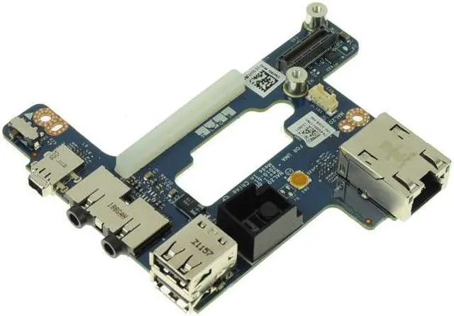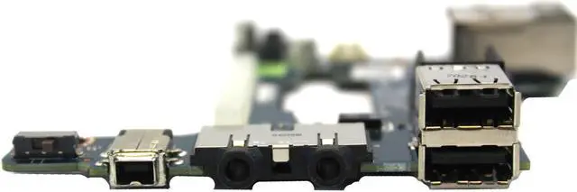 This is a genuine Dell replacement Right Side IO Circuit Board with 1394 FireWire, USB jacks, Audio ports, RJ-45 Network Port, and Power Button- that connects to a Motherboard for the Dell Latitude E6510, and Precision M4500.
