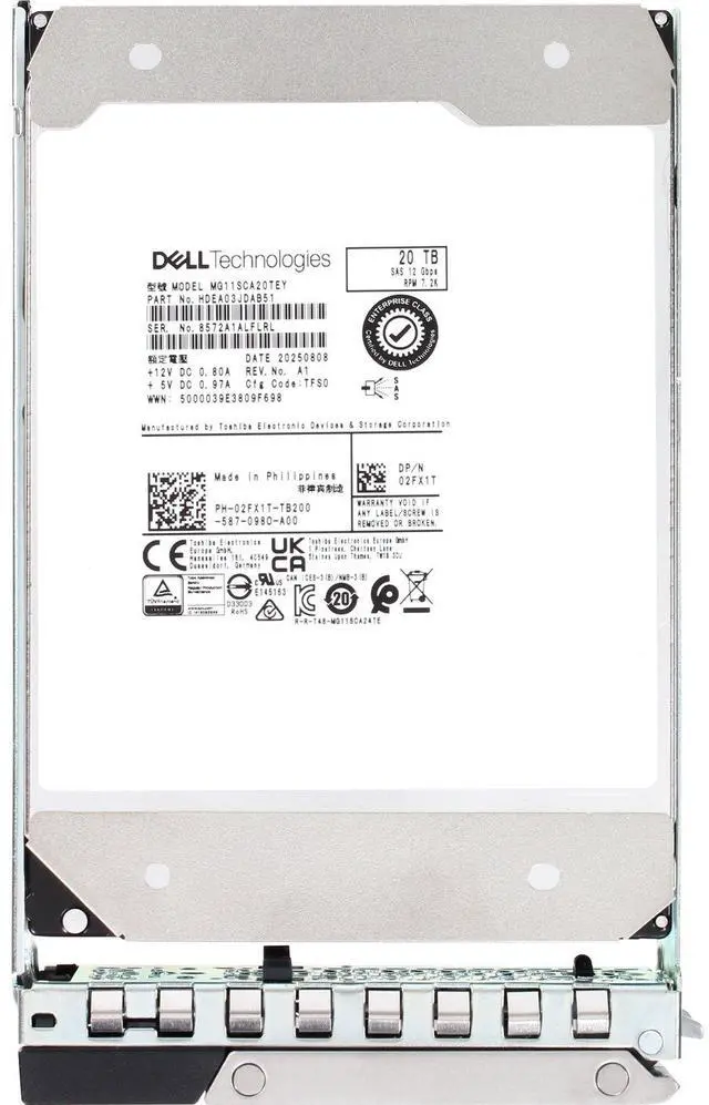 Dell 20TB 7.2K 512e 12Gbps NL SAS 3.5 HDD MG11SCA (2FX1T-OSTK)