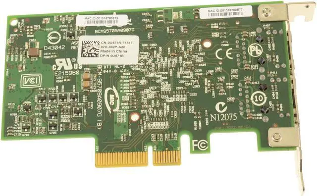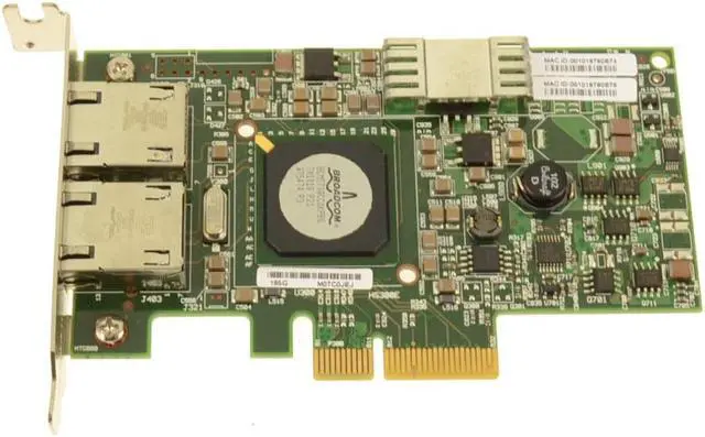 Genuine Dell original PowerEdge Server Broadcom 5709 Dual Port Gigabit 10/100/1000 PCIE NIC Card, with low profile PCIe bracket.