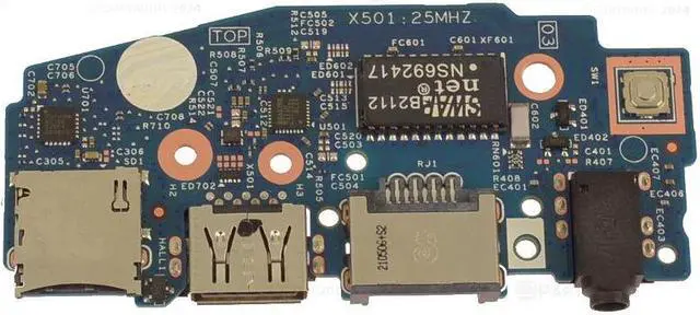 Genuine Dell OEM Power Button, USB and SD Card Slot IO Circuit Board- this houses one USB port, RJ-45 network port, SD Card Reader, and the Power Button.