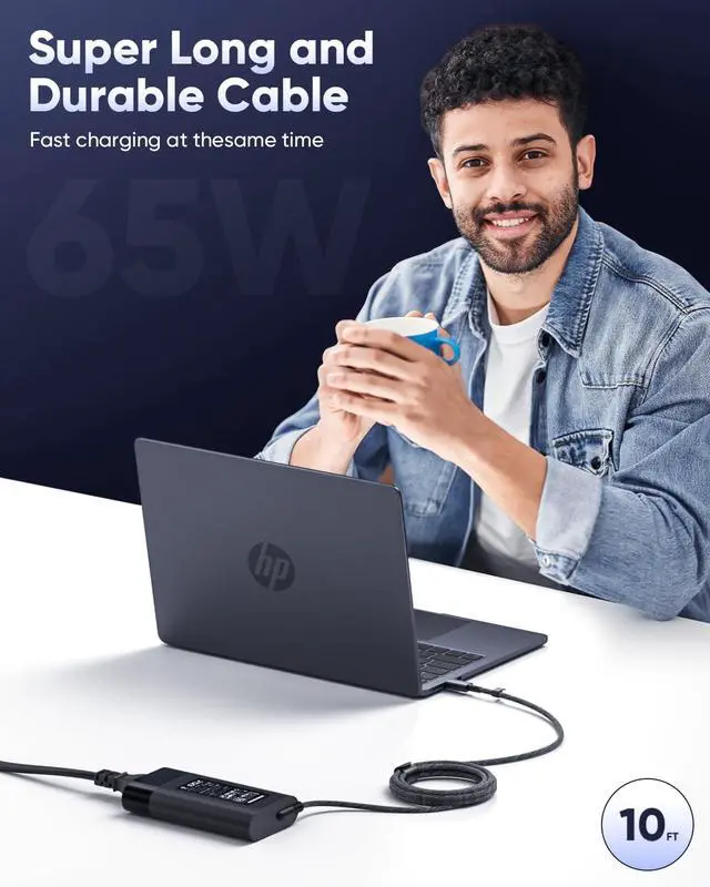 65W USB C AC Adapter Compatible with HP Laptop Charger Power Cord US Plug