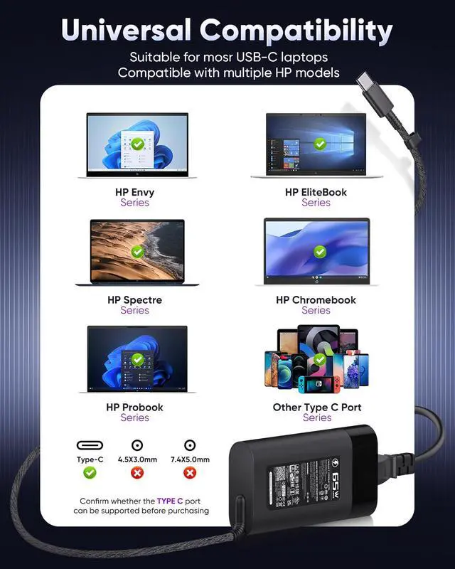Absolutely! This 65W USB-Ccharger is compatible with a wide range of HP devicesincluding the SpectreX2, Elite X2, Enwy X2, and various EiteBook models,