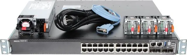 Switch Includes: 1 x Hot-swappable 550W AC Standard Airflow (I/O to PSU) PSU. 3 x Hot-swappable Standard Airflow (I/O to PSU) Fans. Rack ears included.