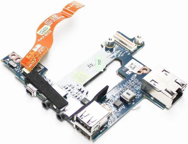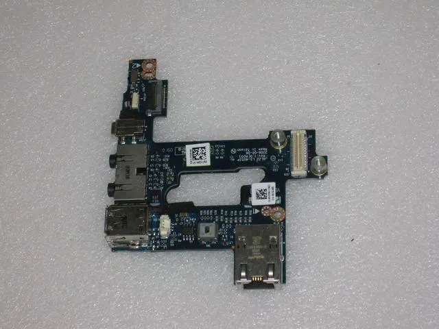 This is a genuine Dell replacement Right Side IO Circuit Board with Power Button, USB jacks, Audio ports, and RJ-45- that connects to a Motherboard for the Dell Latitude E6500, and Precision M4400.